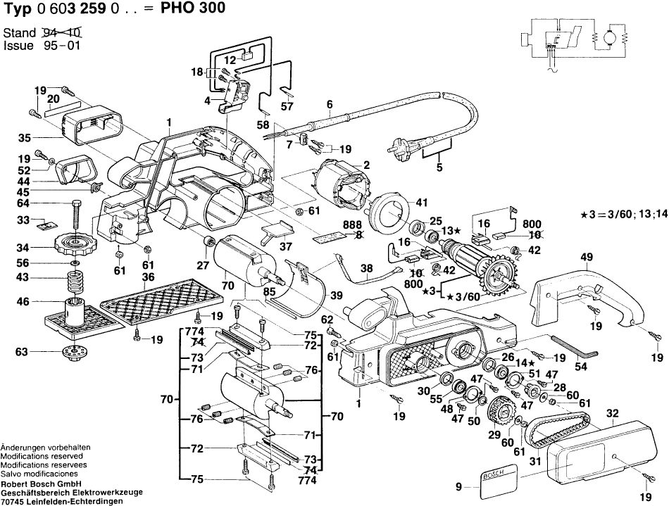 Onderdelen lijst van de Bosch 0603259003 ( PHO300 )