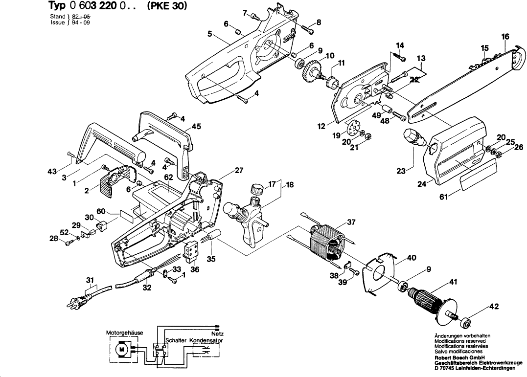 Hier vindt u alle beschikbare onderdelen en tekeningen van de 'Bosch 0603220003 ( PKE30 )'. Vanaf hier kunt u direct alle gewenste onderdelen bestellen. Vele onderdelen moeten bij de fabrikant besteld worden, dit duurt afhankelijk van het merk, één tot vier weken. Alle informatie die we hebben, staat op onze website, wij kunnen u geen advies geven over wat u nodig heeft, daarvoor zult u de machine ter reparatie in moeten leveren. Let bij het bestellen op het volgende: