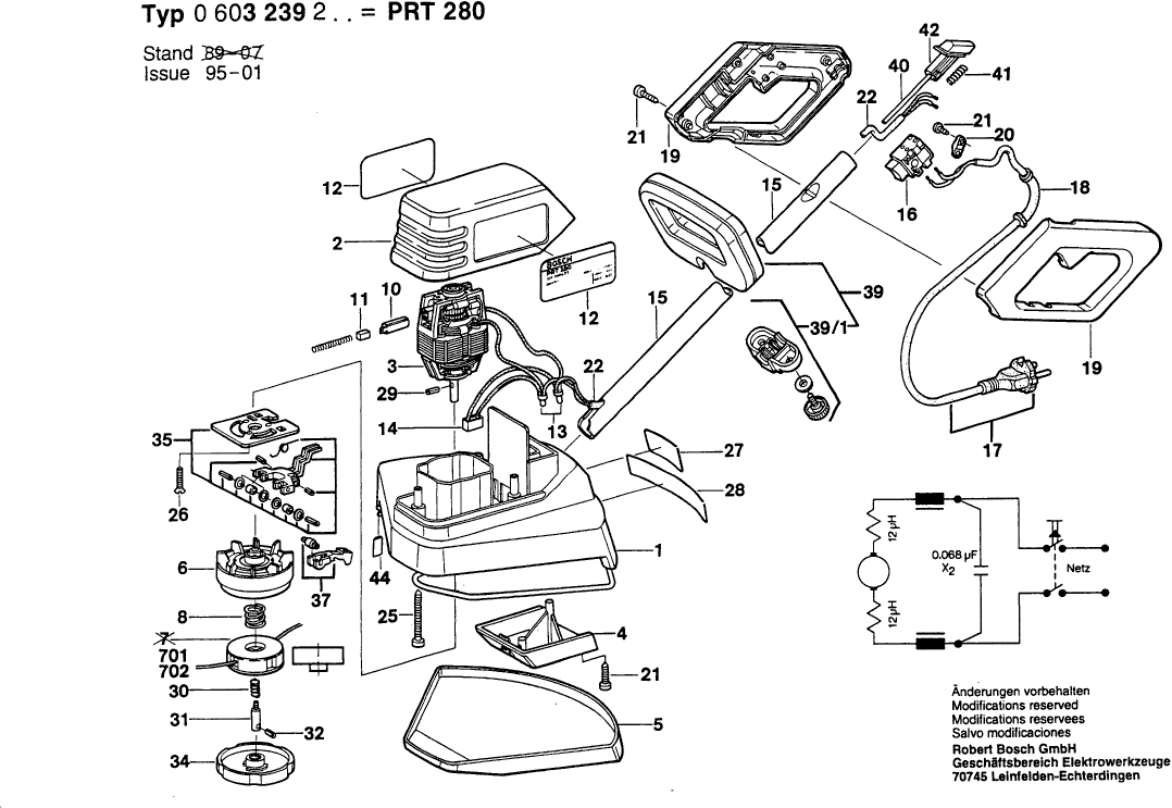 Onderdelen lijst van de Bosch 0603239203 ( PRT280 )