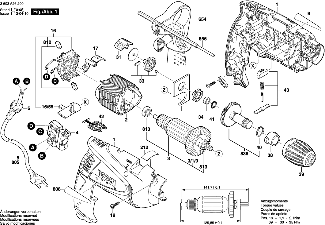 Tekeningen van de Bosch 3603A26200 ( PSB650RE )