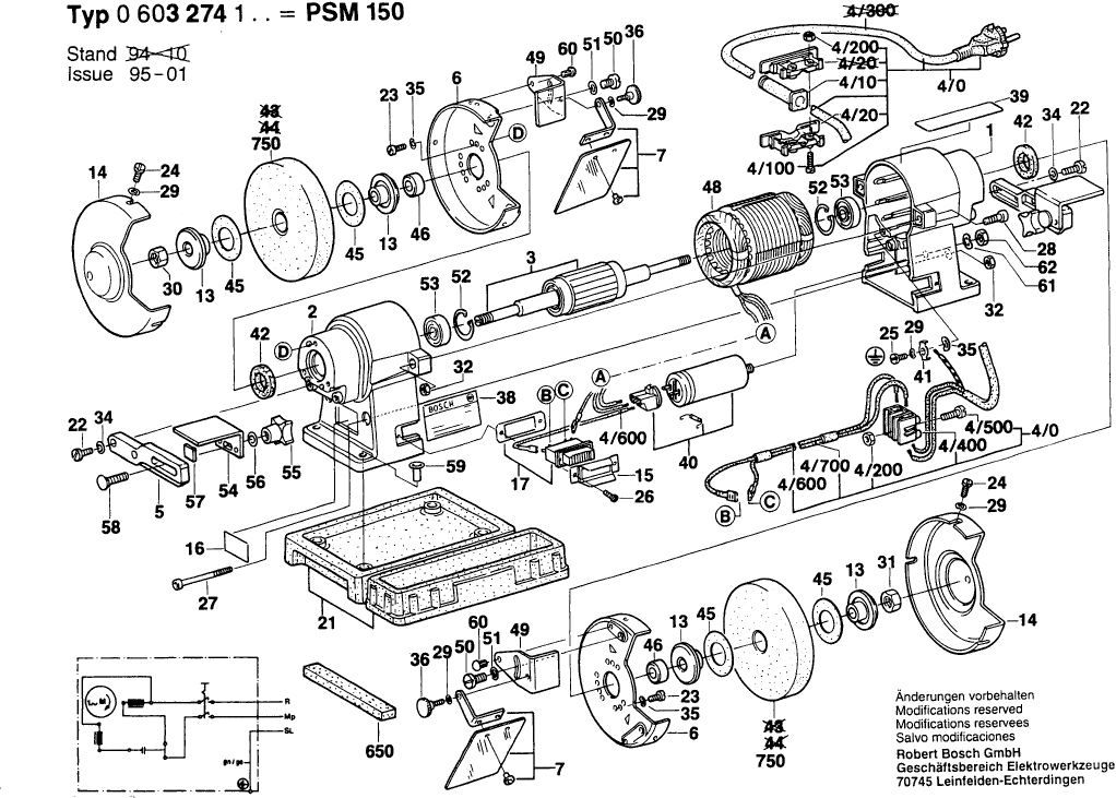 Onderdelen lijst van de Bosch 0603274103 ( PSM150 )