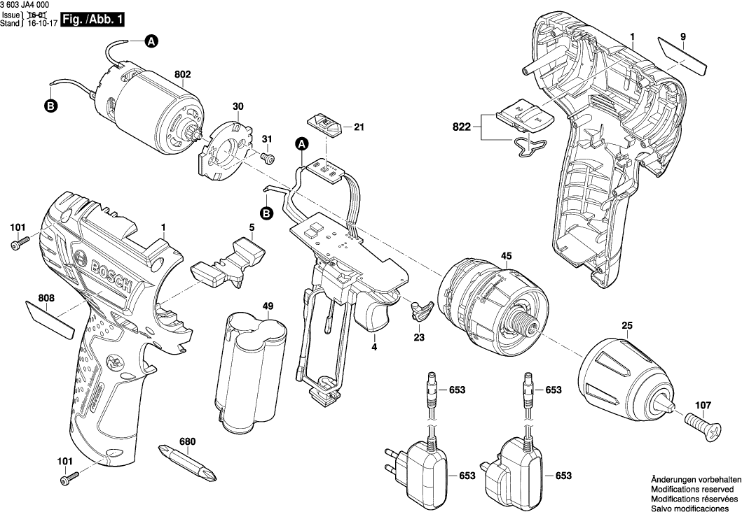 Onderdelen lijst van de Bosch 3603JA4000 ( PSR10,8LI-2 )