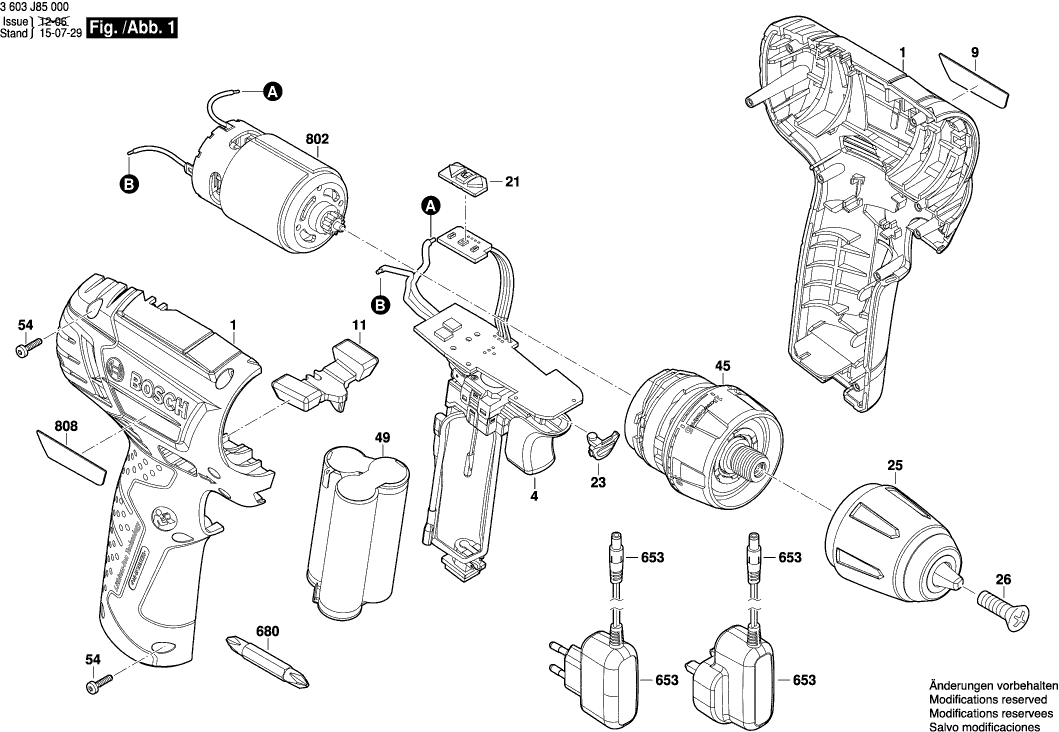 Onderdelen lijst van de Bosch 3603J85001 ( PSR1080LI )