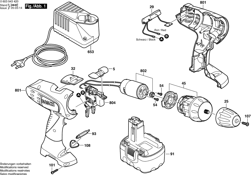 Onderdelen lijst van de Bosch 0603943425 ( PSR14,4VE-2 )