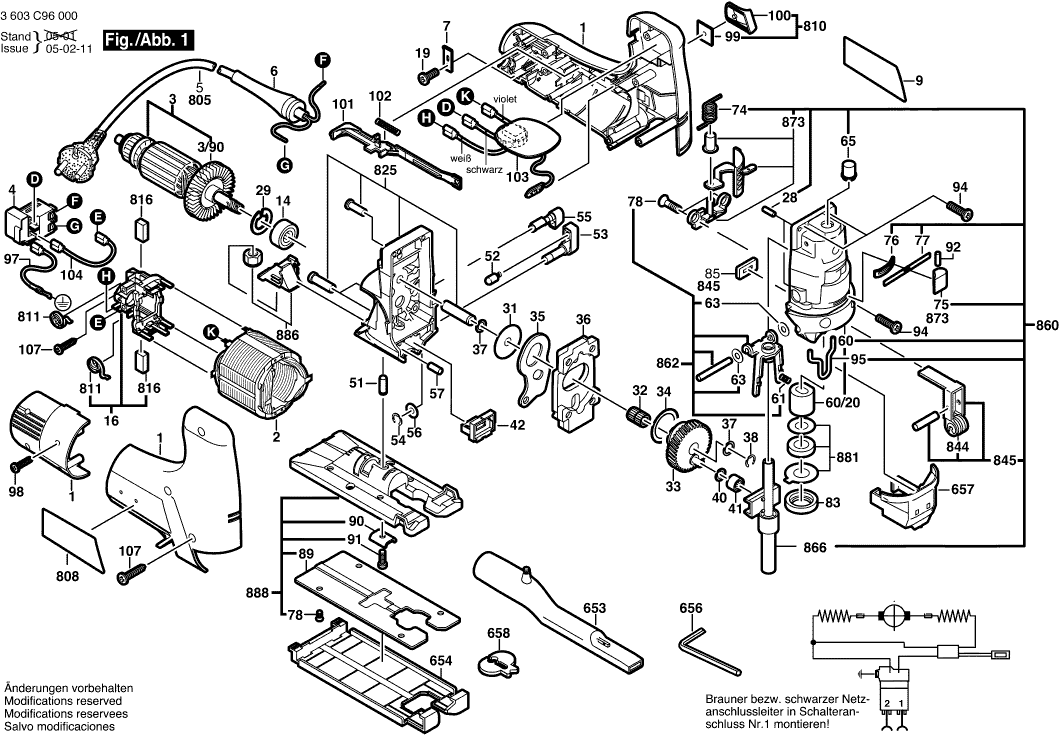 Tekeningen van de Bosch 3603C96000 ( PST1000CE )