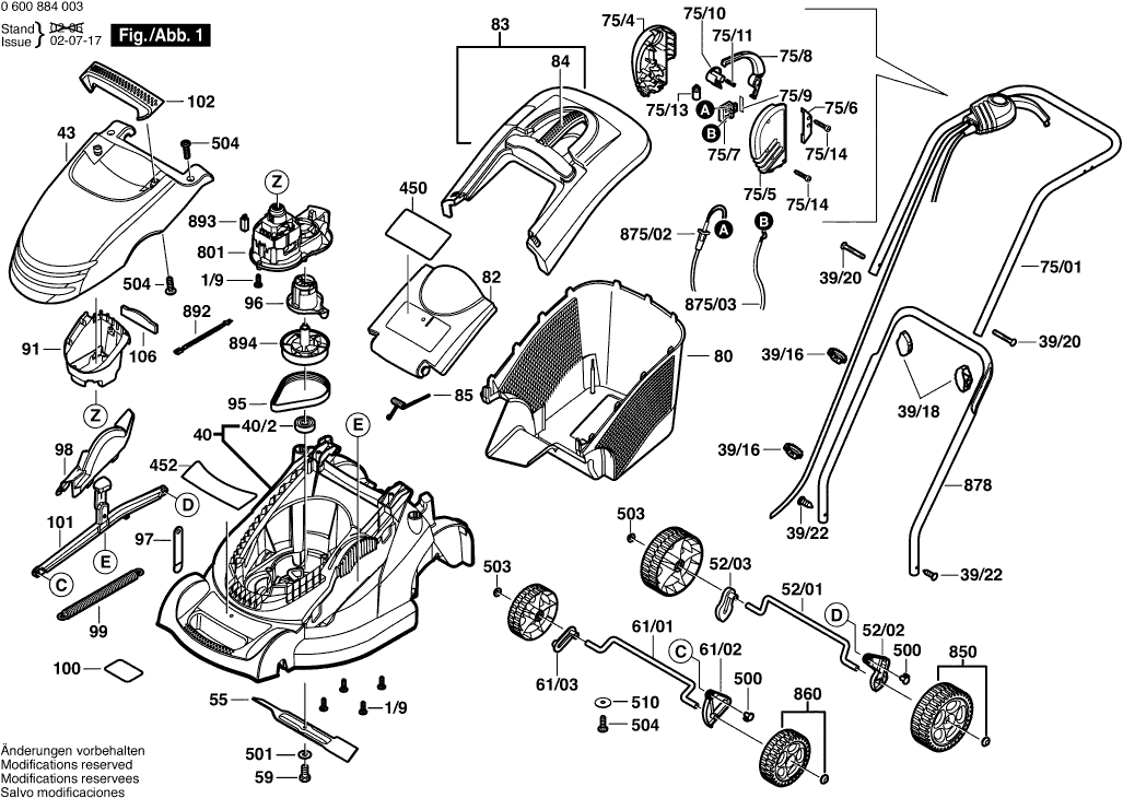 Onderdelen lijst van de Bosch 0600884079 ( ROTAK1300 )