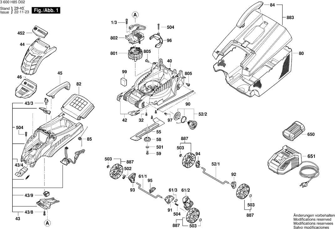 Onderdelen lijst van de Bosch 3600H85D03 ( ROTAK32LIHIGHPOWER )