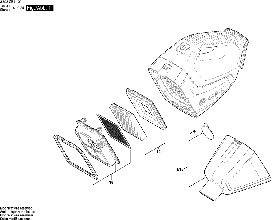 Onderdelen lijst van de Bosch 3603CB9100 ( UNIVERSALVAC18 )
