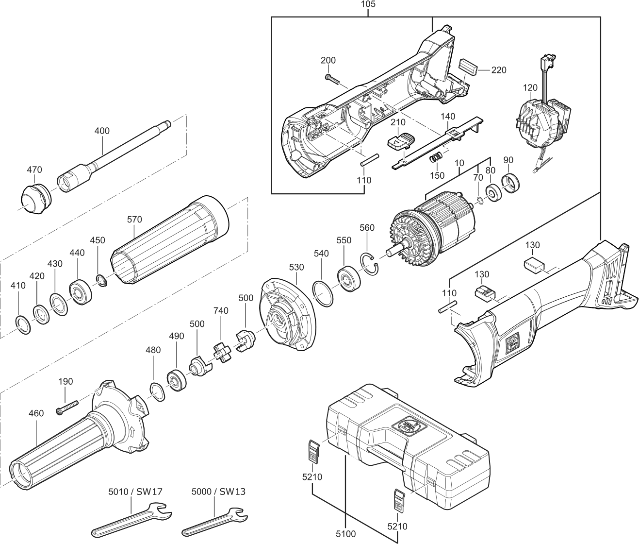 Onderdelen lijst van de Fein 71230209940 ( AGSZ18-280LBL )