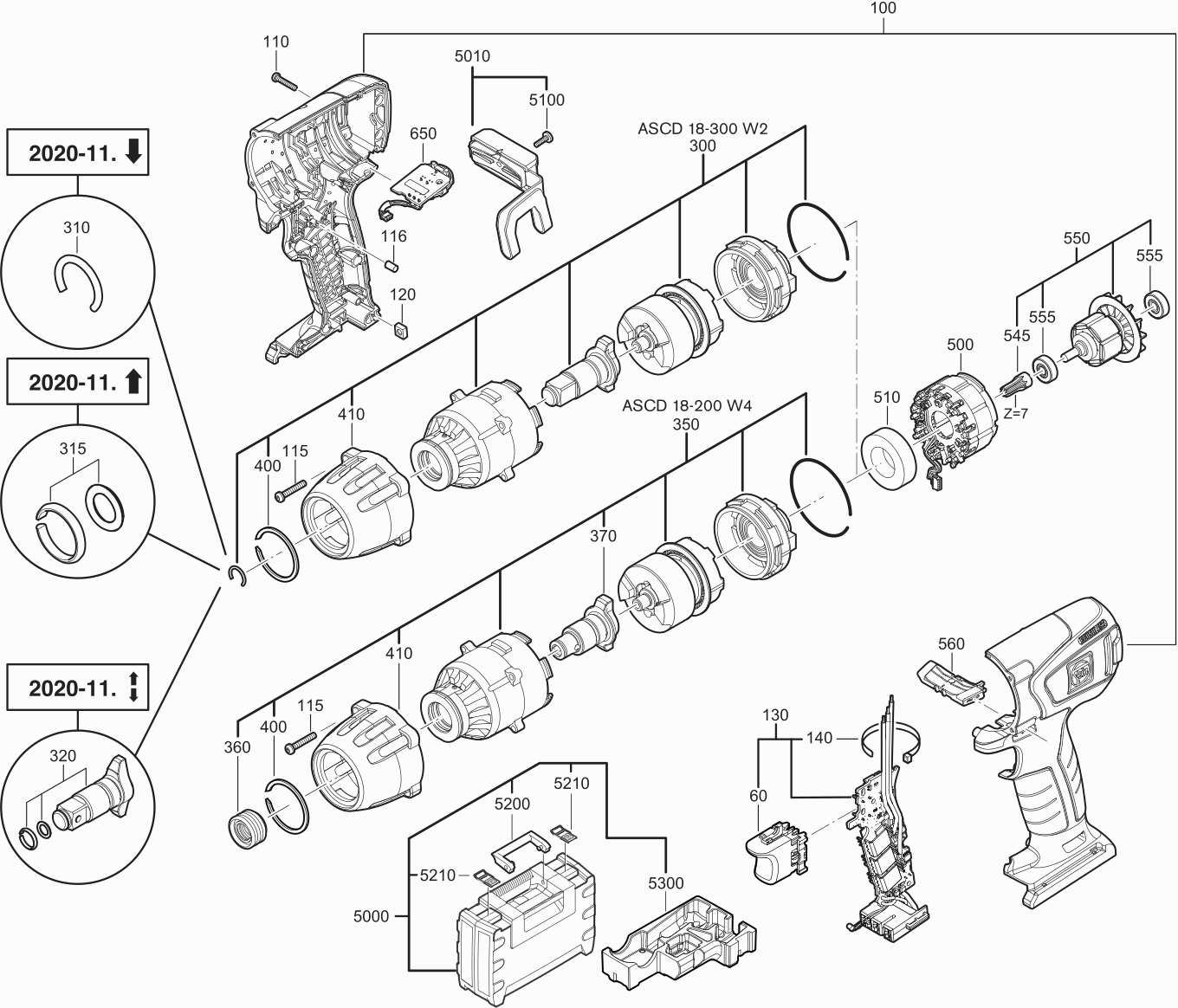 Onderdelen lijst van de Fein 71150700940 ( ASCD18-200W4 )