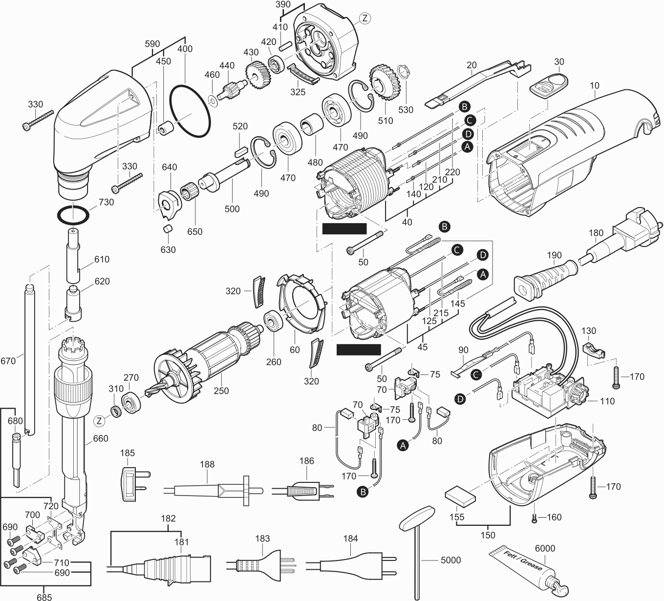 Onderdelen lijst van de Fein 72323900230 ( BLK1.6LE )