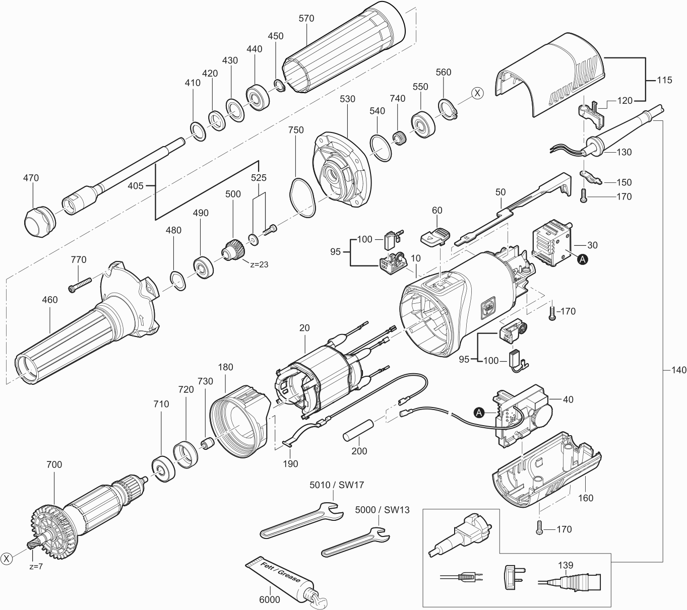 Onderdelen lijst van de Fein 72232000230 ( GSZ8-90PEL )