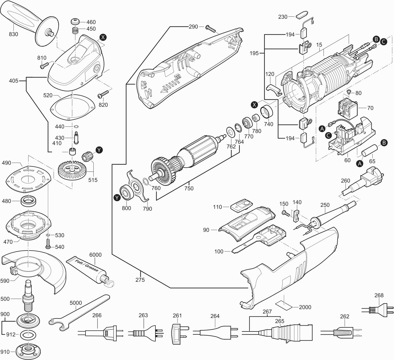 Onderdelen lijst van de Fein 72214400230 ( WSG14-125S )
