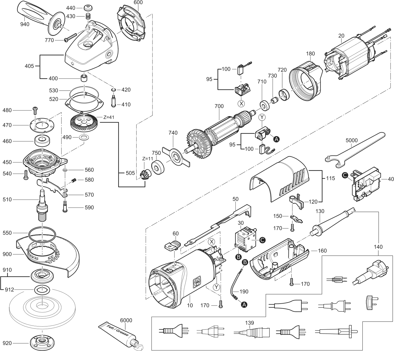 Onderdelen lijst van de Fein 72224024230 ( WSG17-125 )