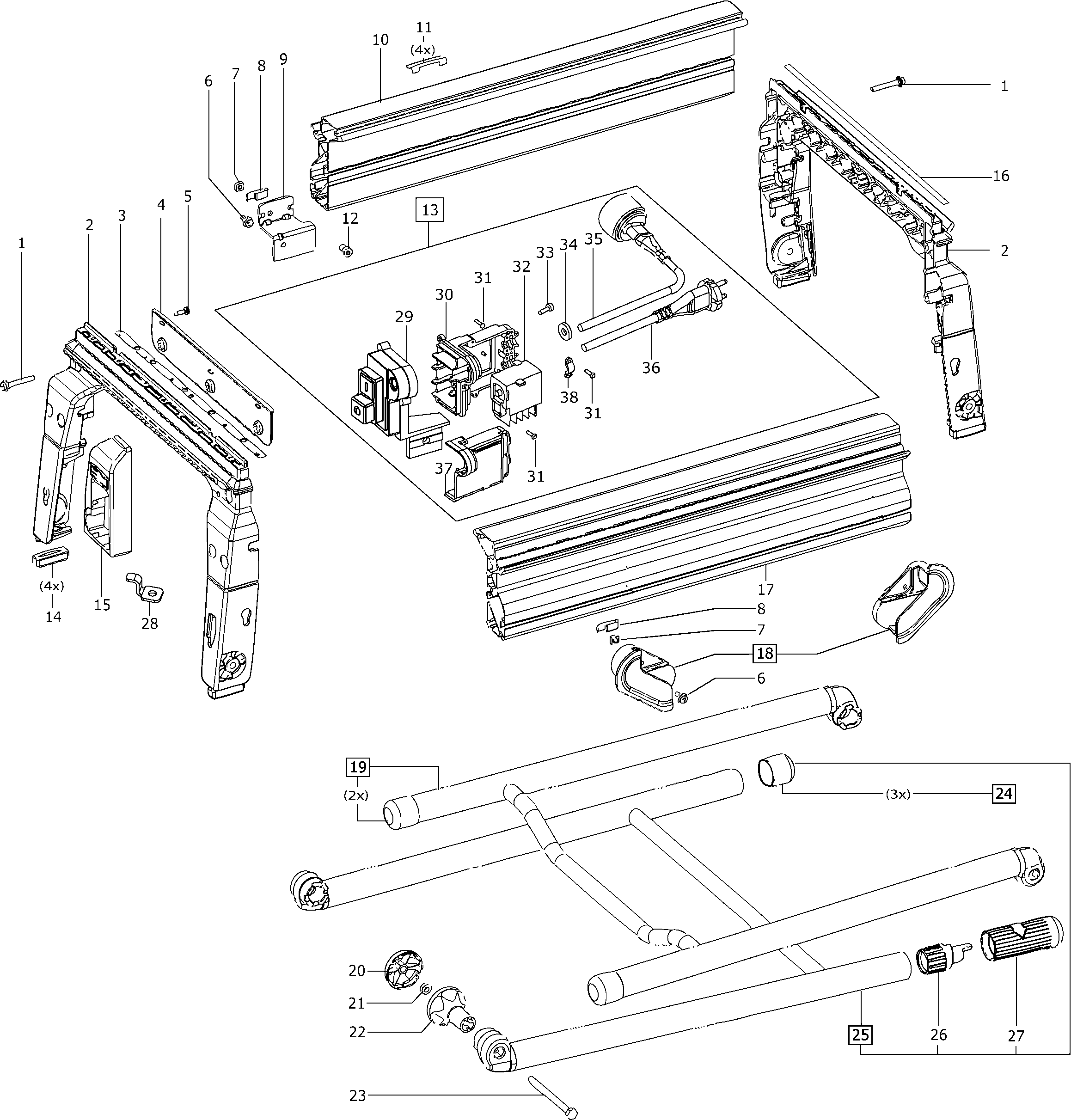 Hier vindt u alle beschikbare onderdelen en tekeningen van de 'Festool 493332 ( CMS-GE )'. Vanaf hier kunt u direct alle gewenste onderdelen bestellen. Vele onderdelen moeten bij de fabrikant besteld worden, dit duurt afhankelijk van het merk, één tot vier weken. Alle informatie die we hebben, staat op onze website, wij kunnen u geen advies geven over wat u nodig heeft, daarvoor zult u de machine ter reparatie in moeten leveren. Let bij het bestellen op het volgende:
