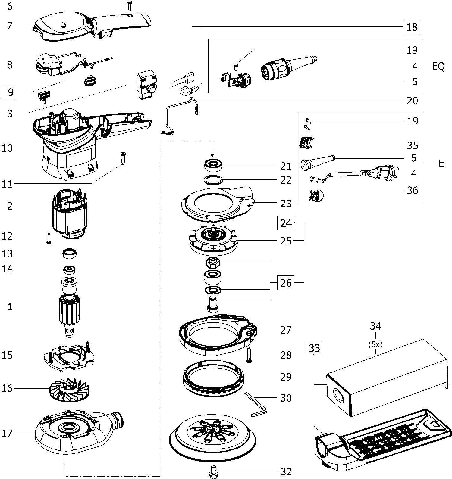 Onderdelen lijst van de Festool 492033 ( ETS150-5EQ )
