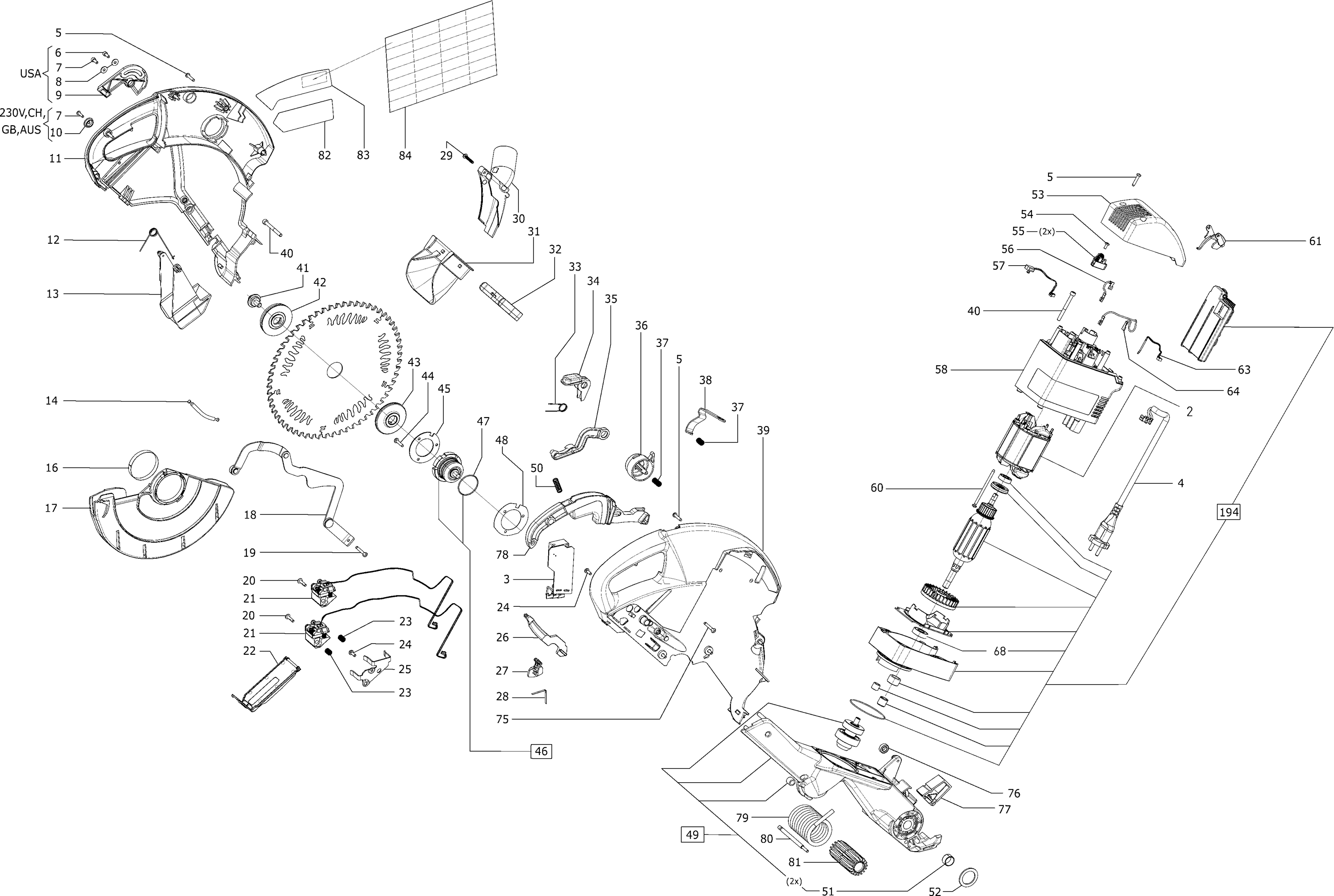 Onderdelen lijst van de Festool 494016 ( KS120EB230V )