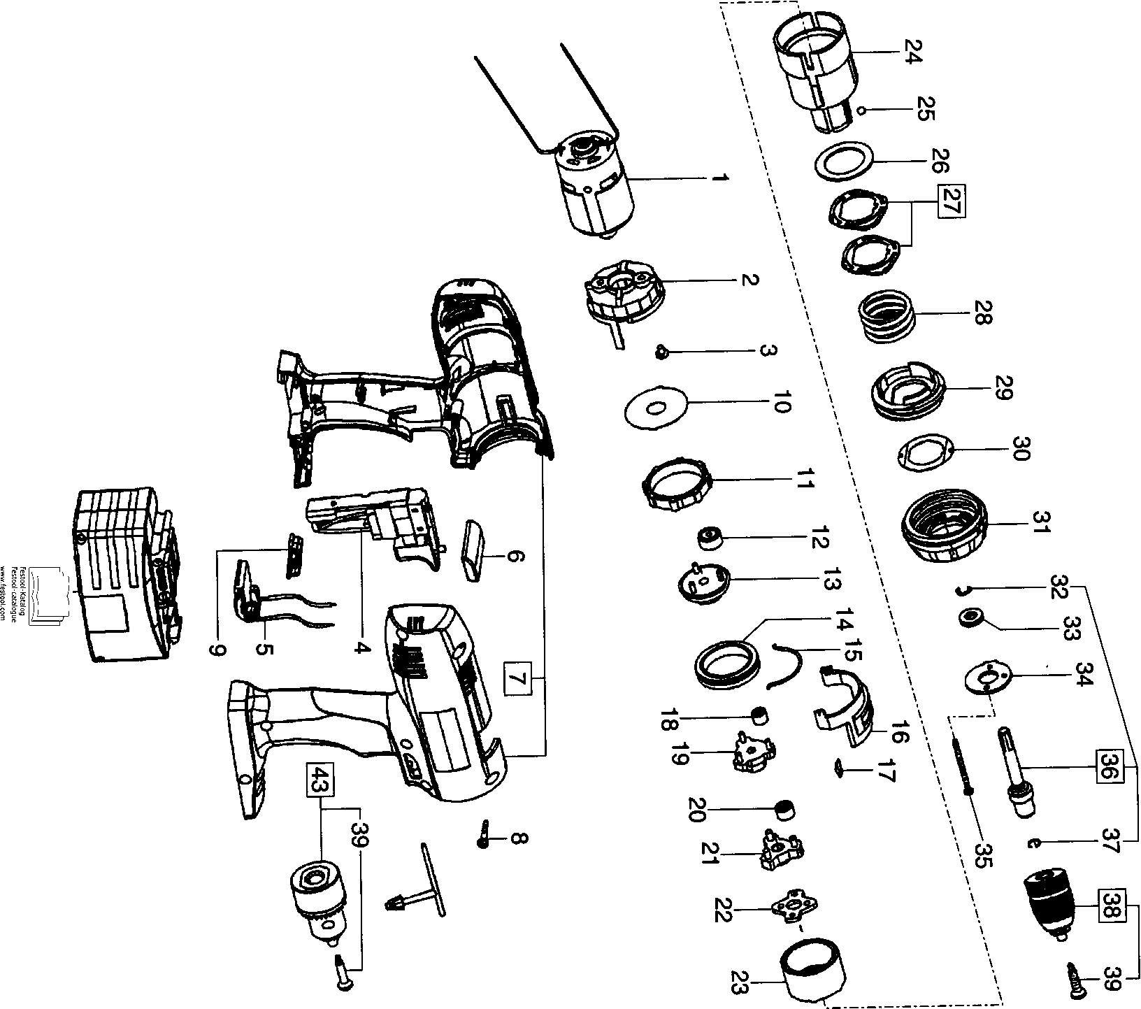 Onderdelen lijst van de Festool 489256 ( TDD9,6ES )