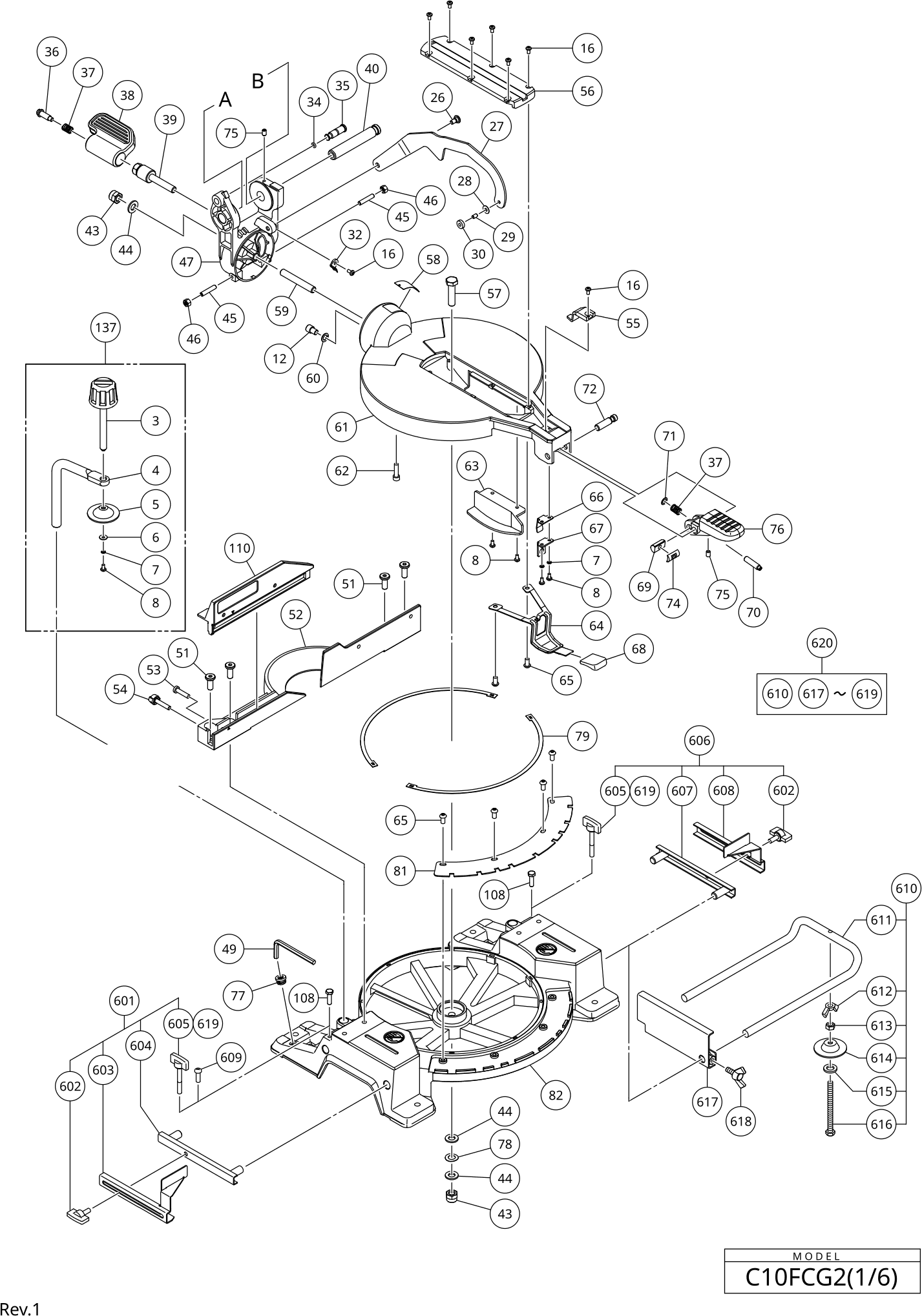 Onderdelen lijst van de Hikoki C10FCG2