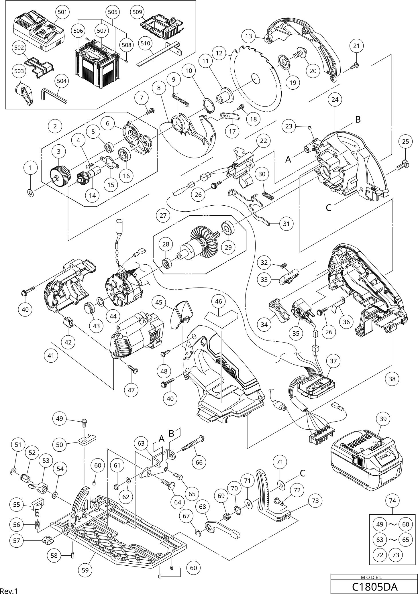 Onderdelen lijst van de Hikoki C1805DA