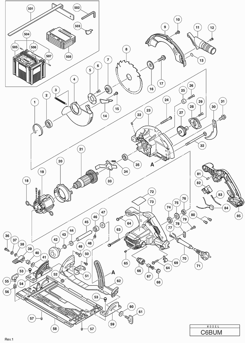 Onderdelen lijst van de Hikoki C6BUM