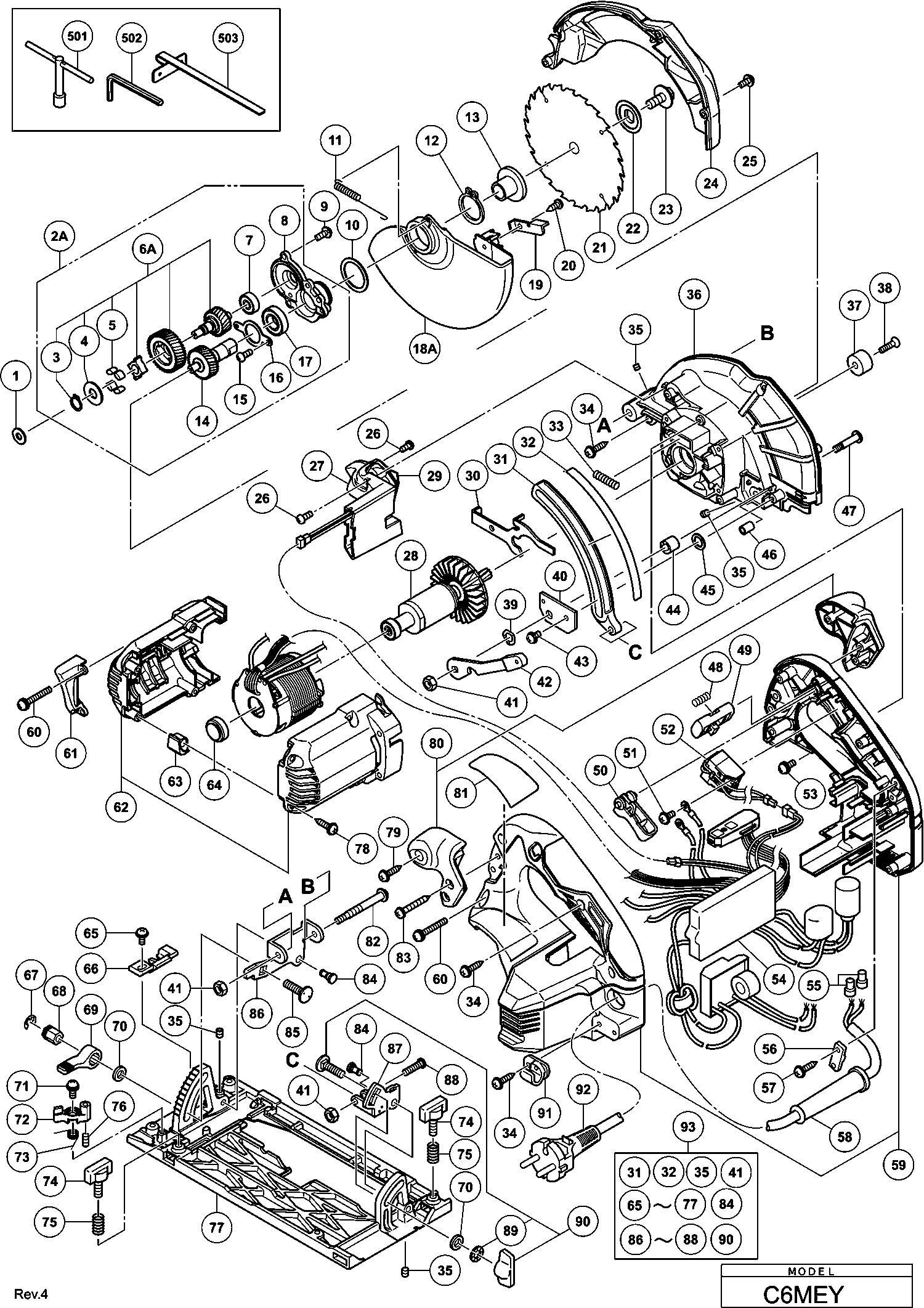 Onderdelen lijst van de Hikoki C6MEY