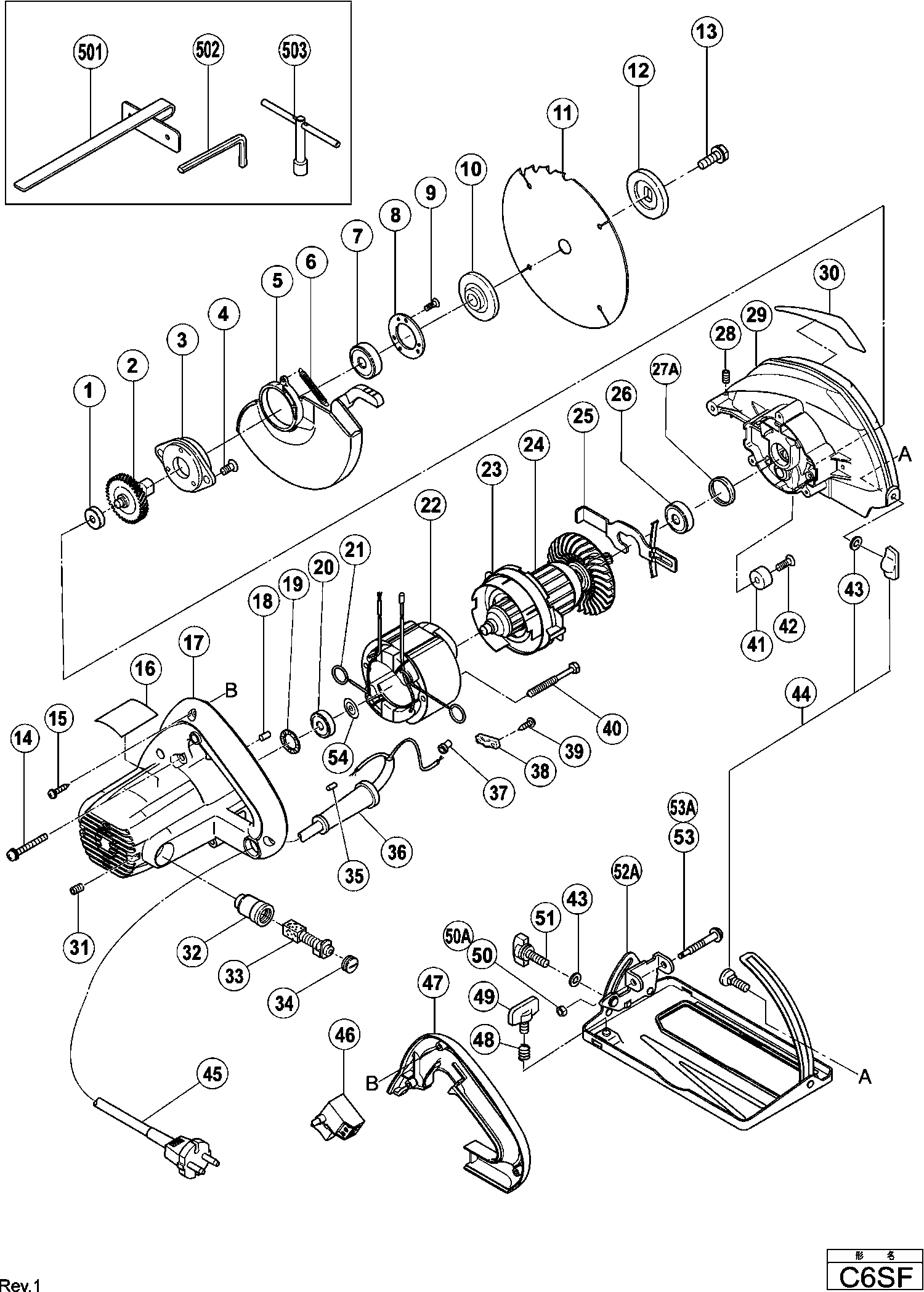 Onderdelen lijst van de Hikoki C6SF
