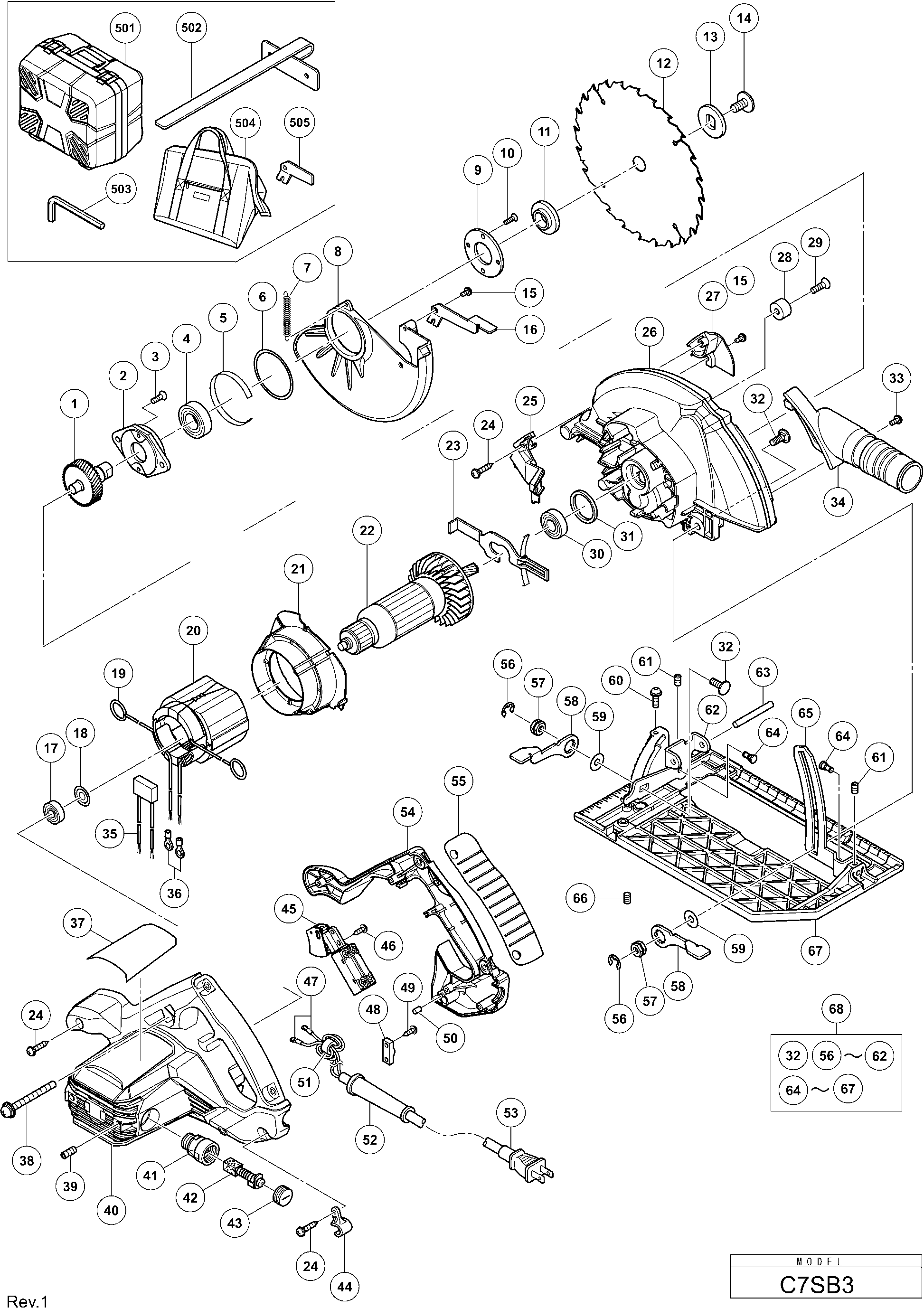 Hier vindt u alle beschikbare onderdelen en tekeningen van de 'Hikoki C7SB3'. Vanaf hier kunt u direct alle gewenste onderdelen bestellen. Vele onderdelen moeten bij de fabrikant besteld worden, dit duurt afhankelijk van het merk, één tot vier weken. Alle informatie die we hebben, staat op onze website, wij kunnen u geen advies geven over wat u nodig heeft, daarvoor zult u de machine ter reparatie in moeten leveren. Let bij het bestellen op het volgende: