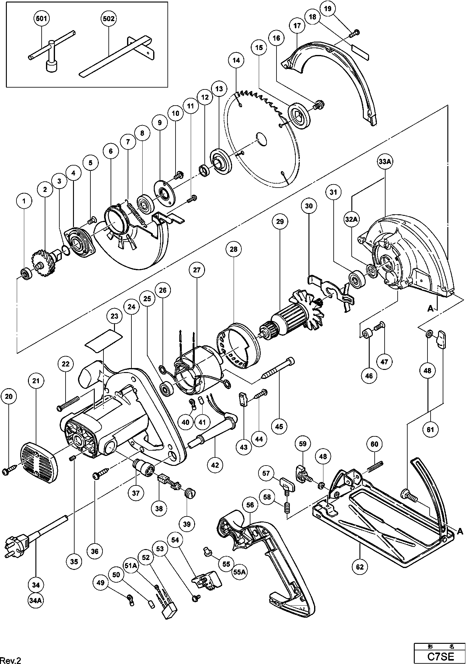 Hier vindt u alle beschikbare onderdelen en tekeningen van de 'Hikoki C7SE'. Vanaf hier kunt u direct alle gewenste onderdelen bestellen. Vele onderdelen moeten bij de fabrikant besteld worden, dit duurt afhankelijk van het merk, één tot vier weken. Alle informatie die we hebben, staat op onze website, wij kunnen u geen advies geven over wat u nodig heeft, daarvoor zult u de machine ter reparatie in moeten leveren. Let bij het bestellen op het volgende:
