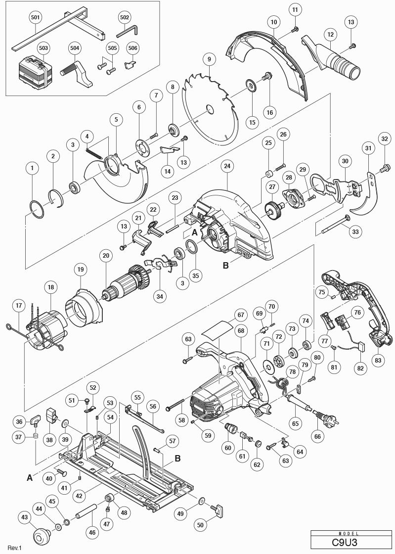 Onderdelen lijst van de Hikoki C9U3