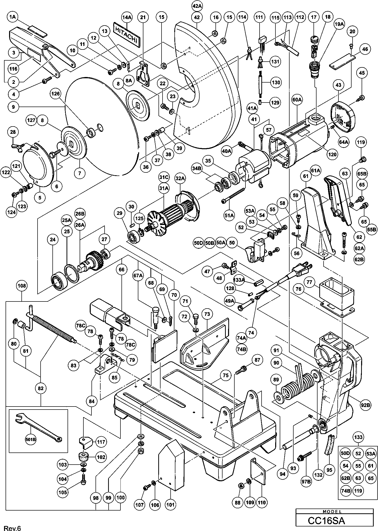 Hier vindt u alle beschikbare onderdelen en tekeningen van de 'Hikoki CC16SA'. Vanaf hier kunt u direct alle gewenste onderdelen bestellen. Vele onderdelen moeten bij de fabrikant besteld worden, dit duurt afhankelijk van het merk, één tot vier weken. Alle informatie die we hebben, staat op onze website, wij kunnen u geen advies geven over wat u nodig heeft, daarvoor zult u de machine ter reparatie in moeten leveren. Let bij het bestellen op het volgende: