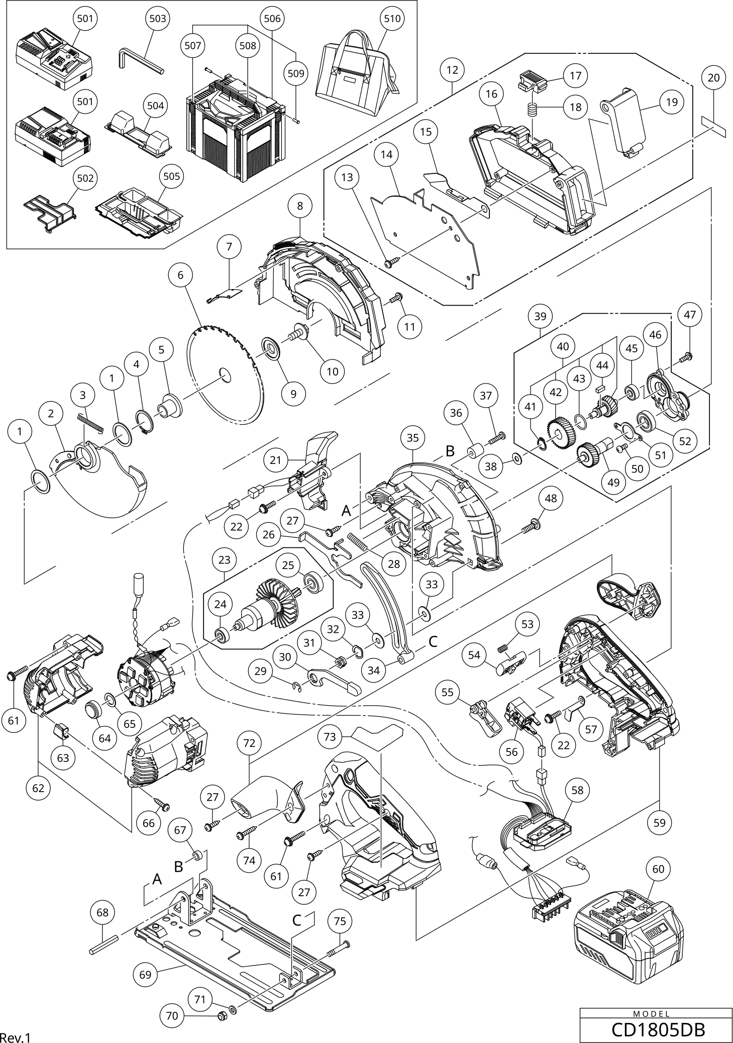 Onderdelen lijst van de Hikoki CD1805DB