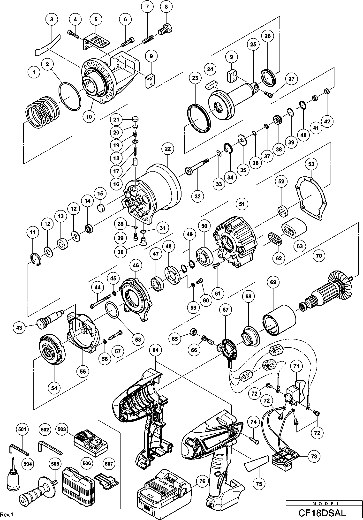 Onderdelen lijst van de Hikoki CF18DSAL