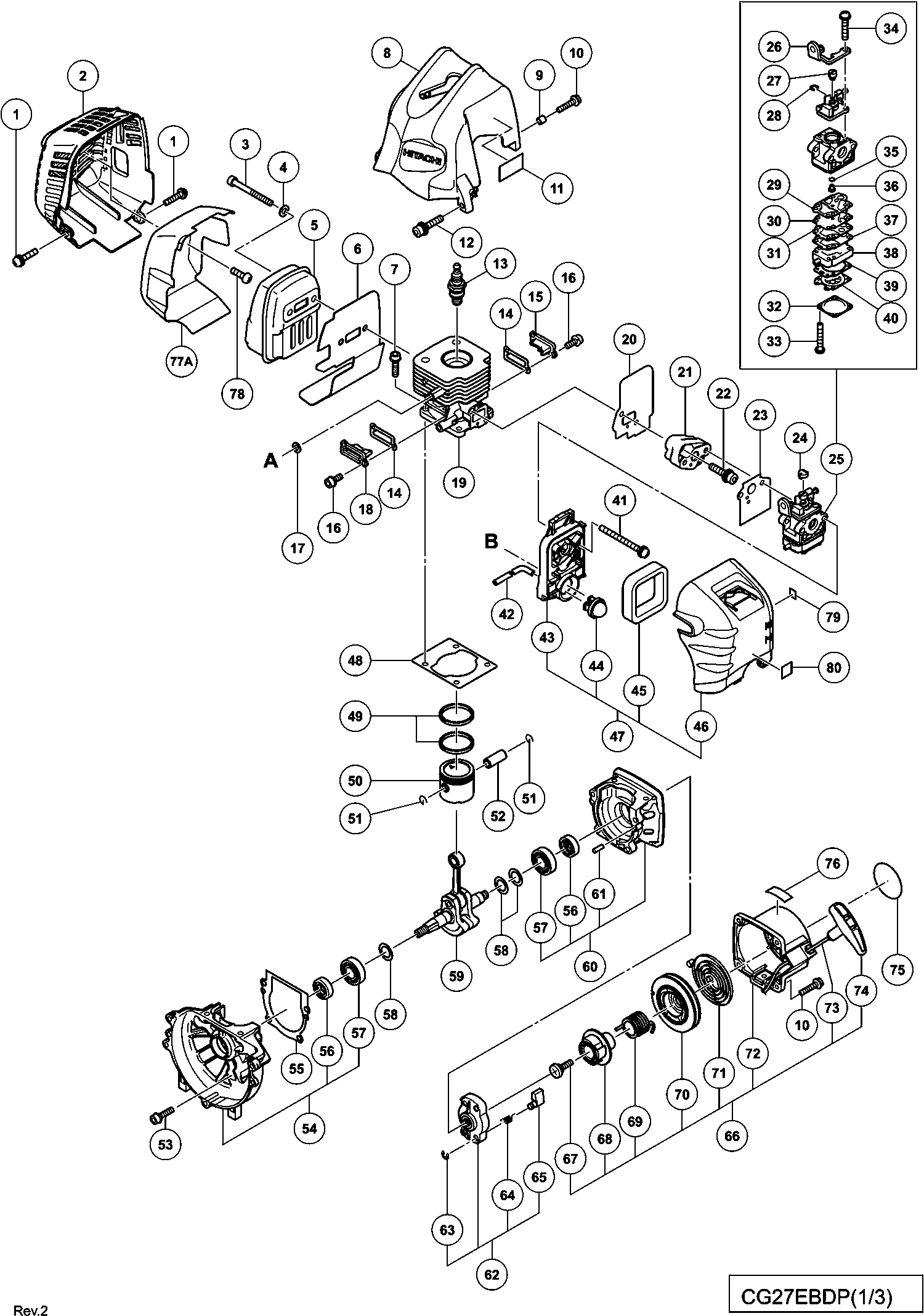 Onderdelen lijst van de Hikoki CG27EBDP