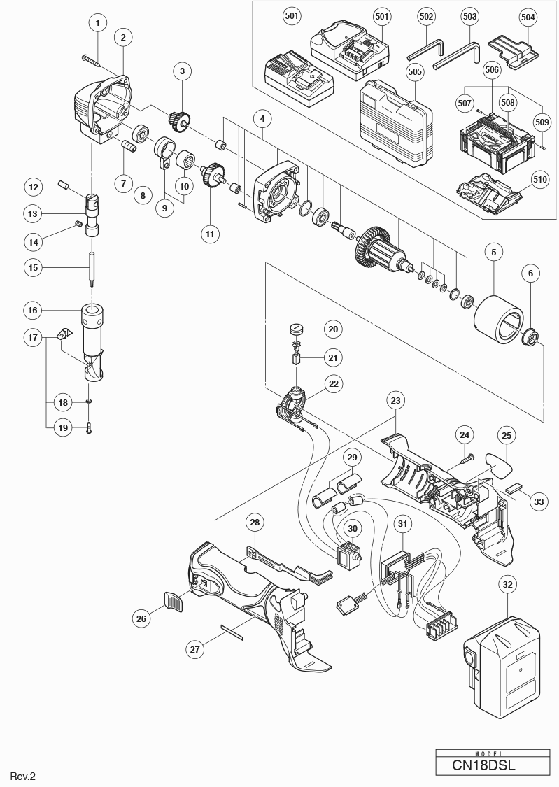 Hier vindt u alle beschikbare onderdelen en tekeningen van de 'Hikoki CN18DSL'. Vanaf hier kunt u direct alle gewenste onderdelen bestellen. Vele onderdelen moeten bij de fabrikant besteld worden, dit duurt afhankelijk van het merk, één tot vier weken. Alle informatie die we hebben, staat op onze website, wij kunnen u geen advies geven over wat u nodig heeft, daarvoor zult u de machine ter reparatie in moeten leveren. Let bij het bestellen op het volgende:
