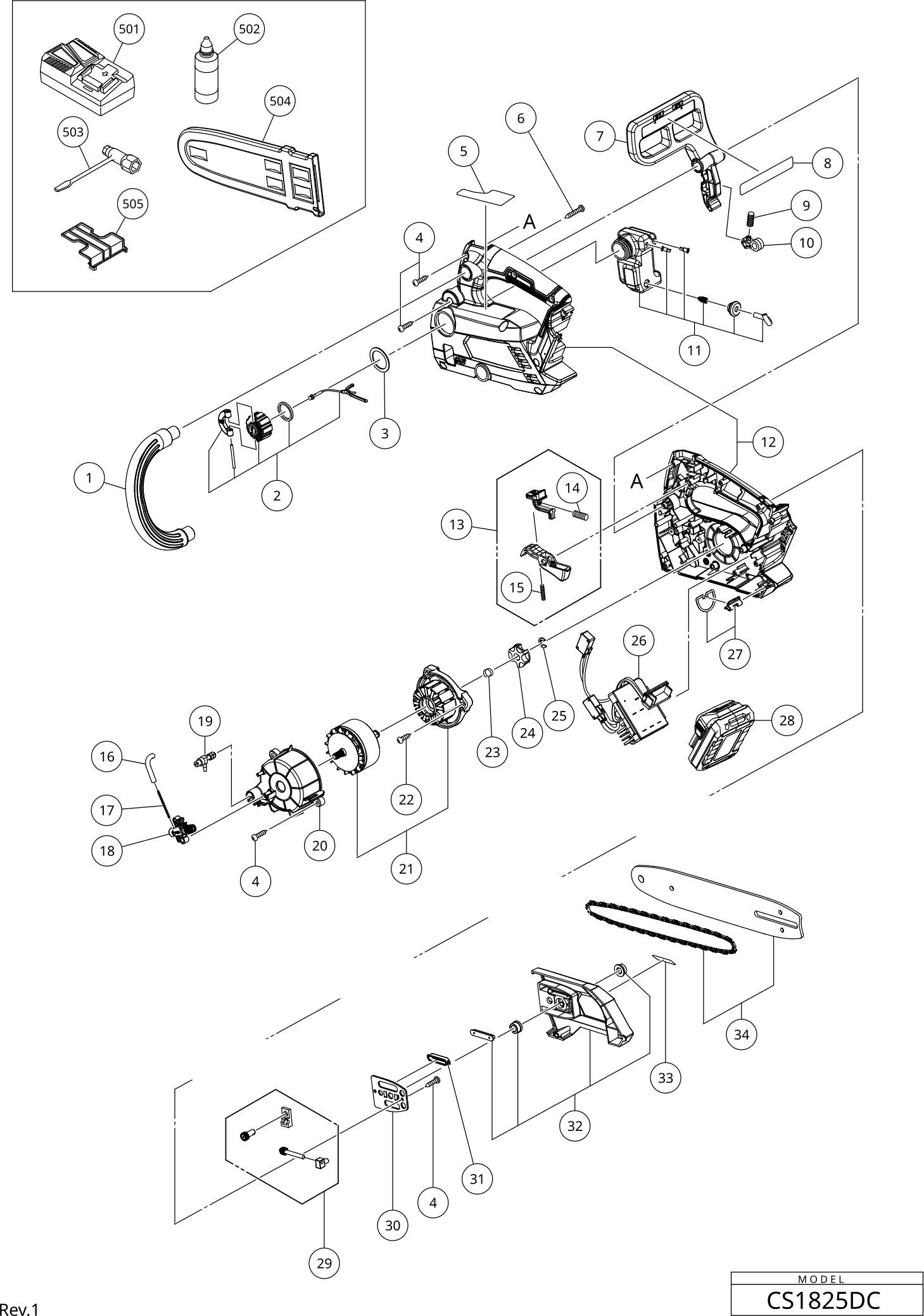 Onderdelen lijst van de Hikoki CS1825DC