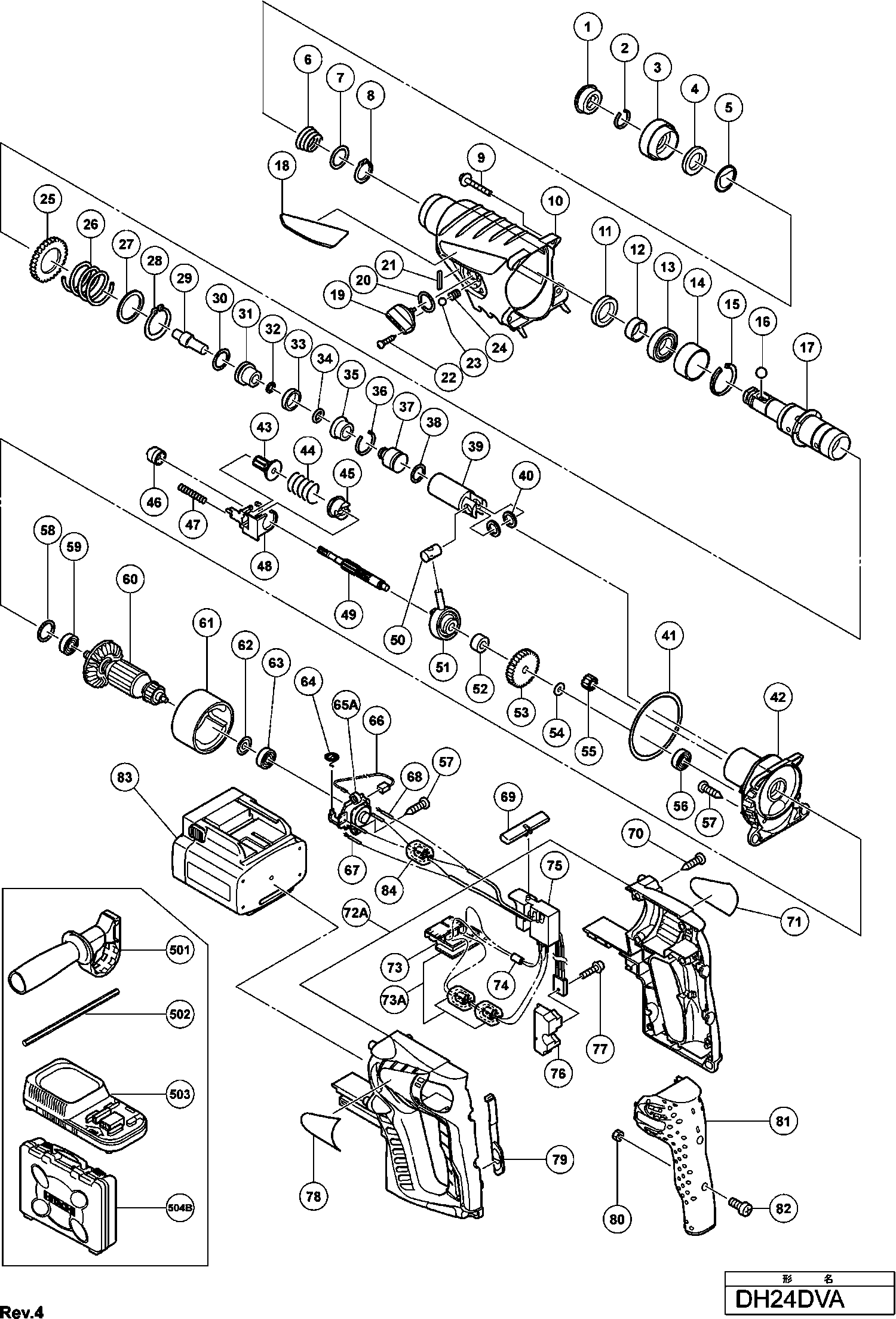 Onderdelen lijst van de Hikoki DH24DVA