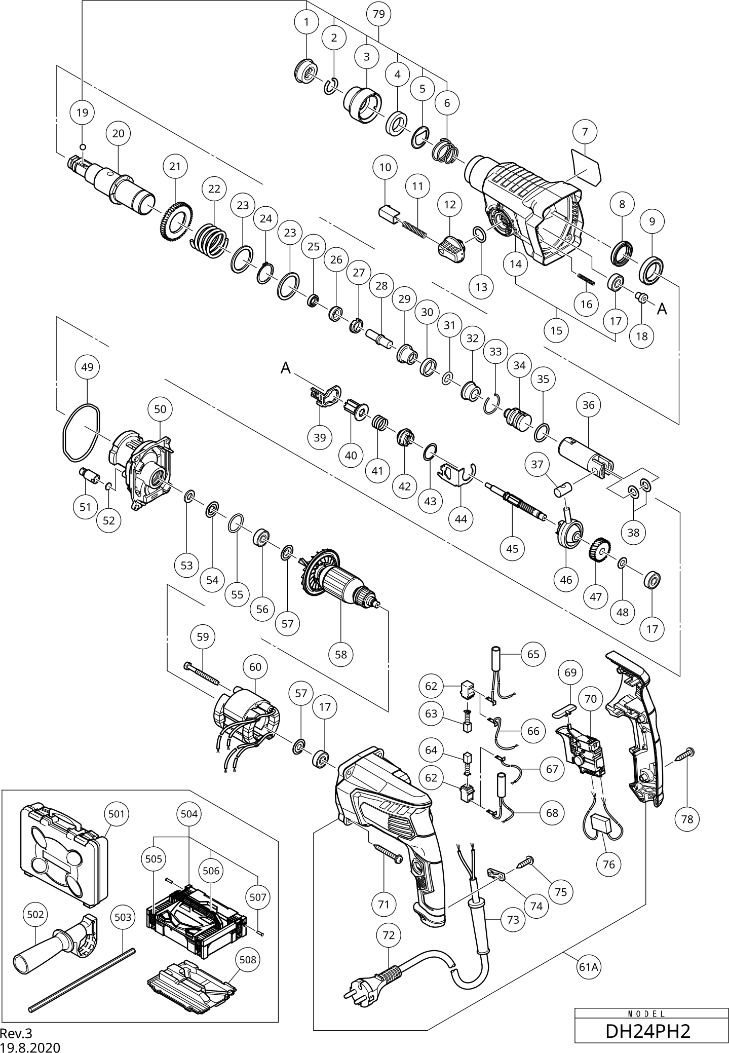 Hier vindt u alle beschikbare onderdelen en tekeningen van de 'Hikoki DH24PH2'. Vanaf hier kunt u direct alle gewenste onderdelen bestellen. Vele onderdelen moeten bij de fabrikant besteld worden, dit duurt afhankelijk van het merk, één tot vier weken. Alle informatie die we hebben, staat op onze website, wij kunnen u geen advies geven over wat u nodig heeft, daarvoor zult u de machine ter reparatie in moeten leveren. Let bij het bestellen op het volgende: