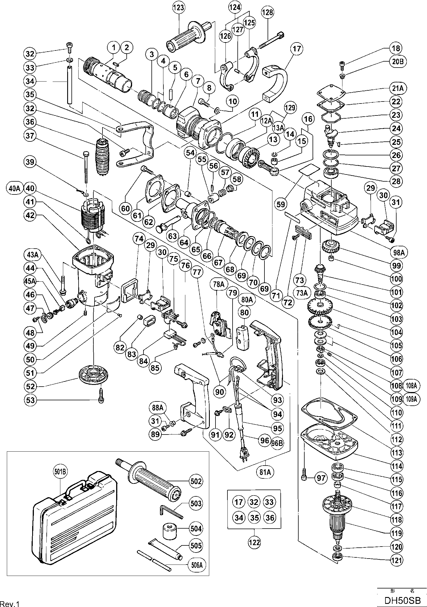 Hier vindt u alle beschikbare onderdelen en tekeningen van de 'Hikoki DH50SB'. Vanaf hier kunt u direct alle gewenste onderdelen bestellen. Vele onderdelen moeten bij de fabrikant besteld worden, dit duurt afhankelijk van het merk, één tot vier weken. Alle informatie die we hebben, staat op onze website, wij kunnen u geen advies geven over wat u nodig heeft, daarvoor zult u de machine ter reparatie in moeten leveren. Let bij het bestellen op het volgende: