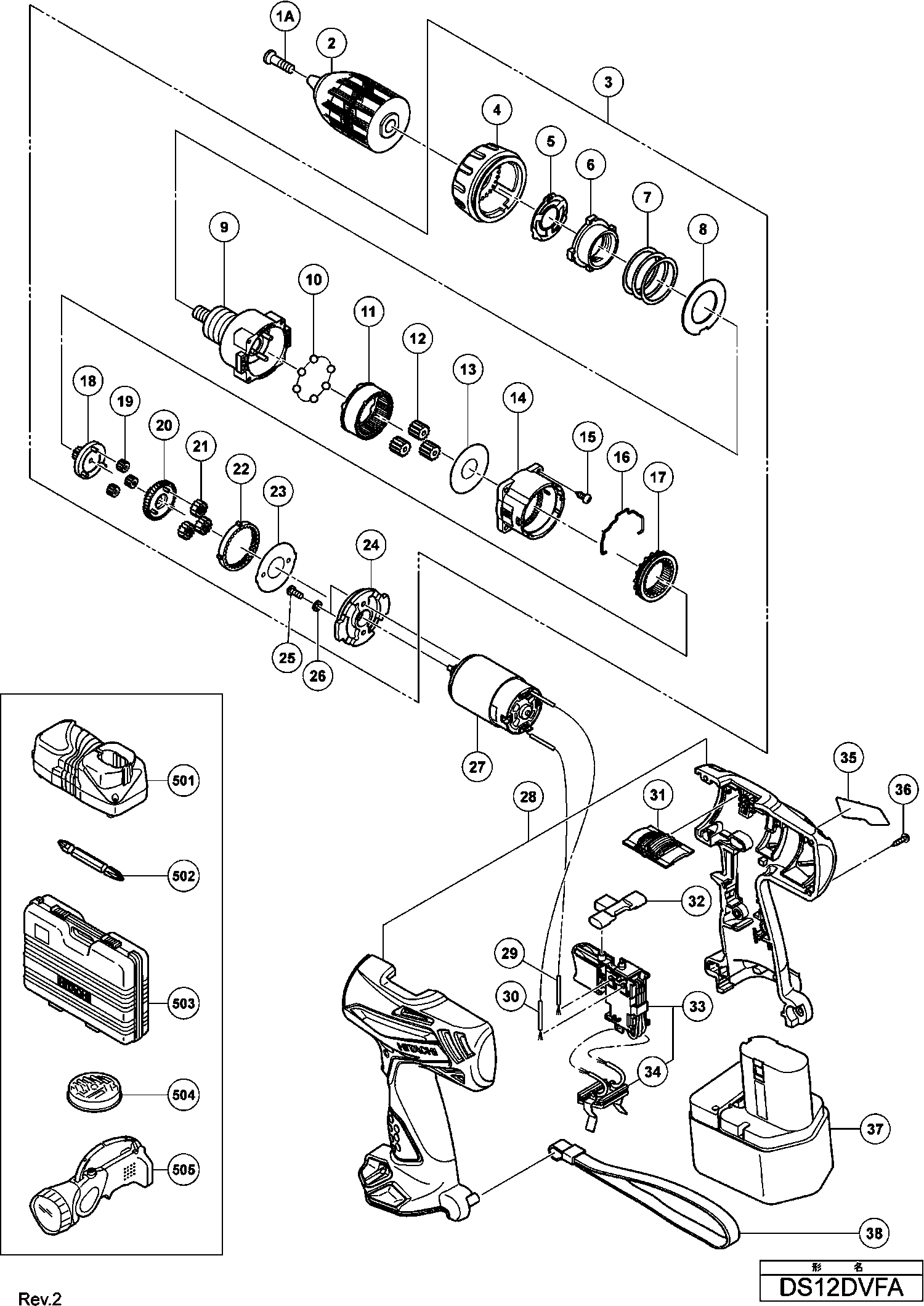 Onderdelen lijst van de Hikoki DS12DVFA