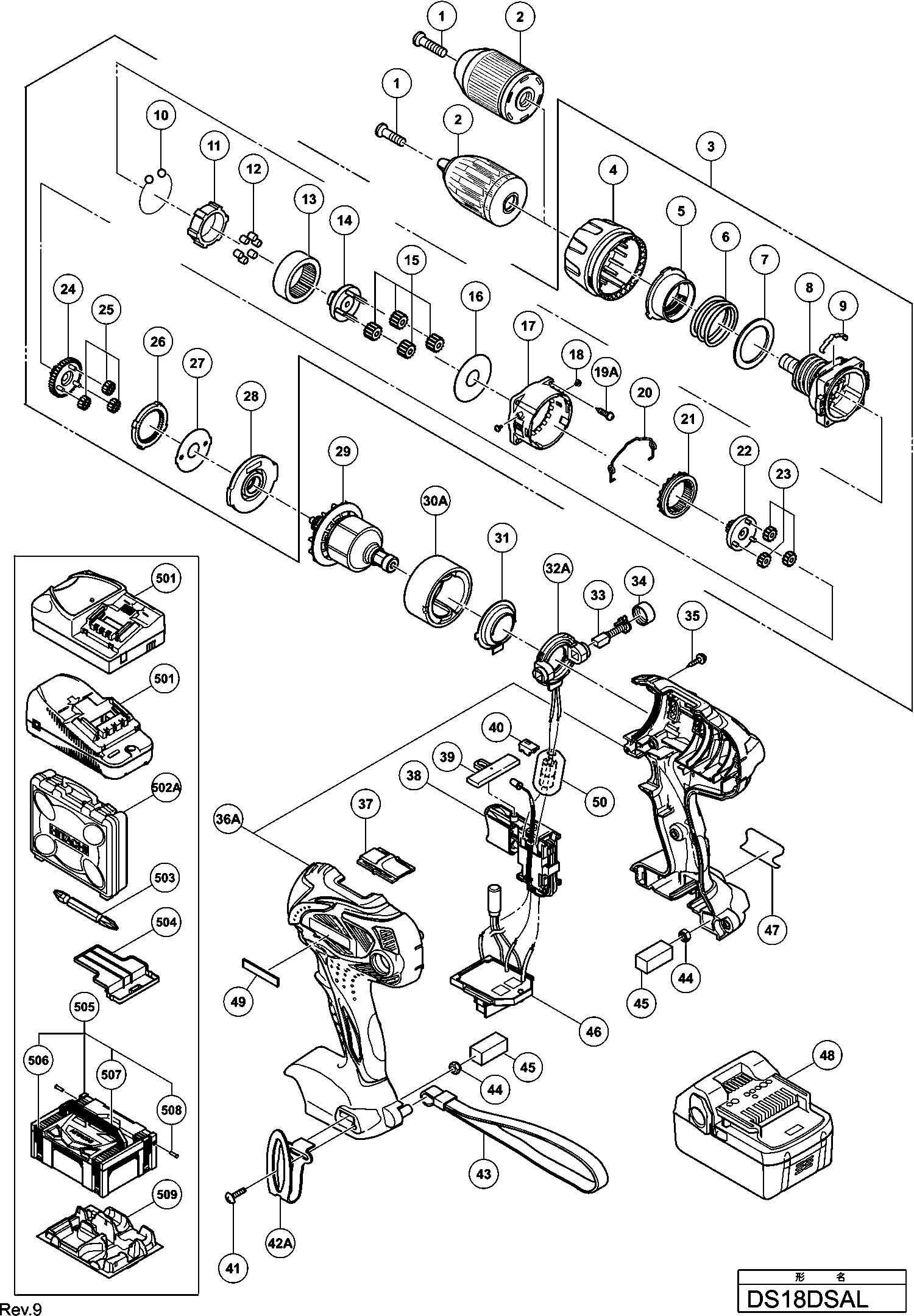 Tekeningen van de Hikoki DS18DSAL