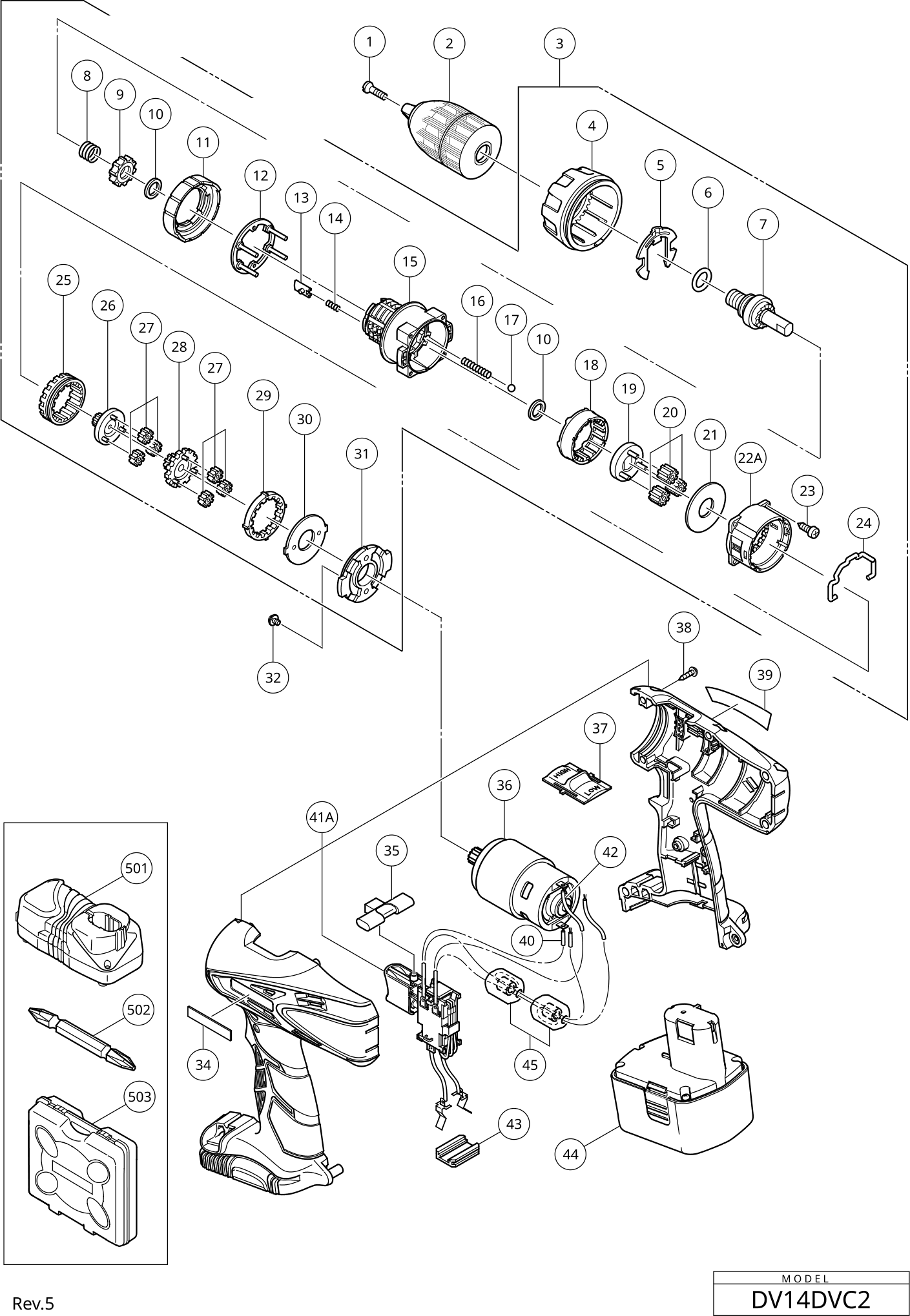 Onderdelen lijst van de Hikoki DV14DVC2