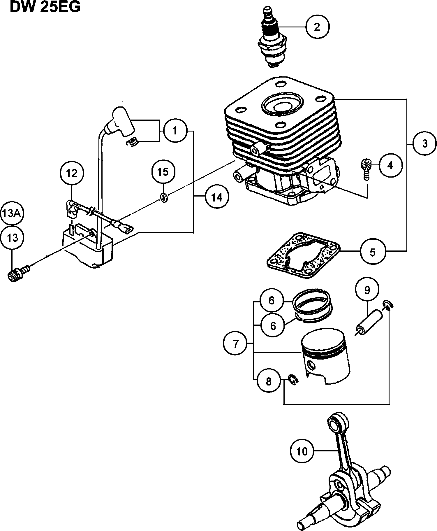 Onderdelen lijst van de Hikoki DW25EG