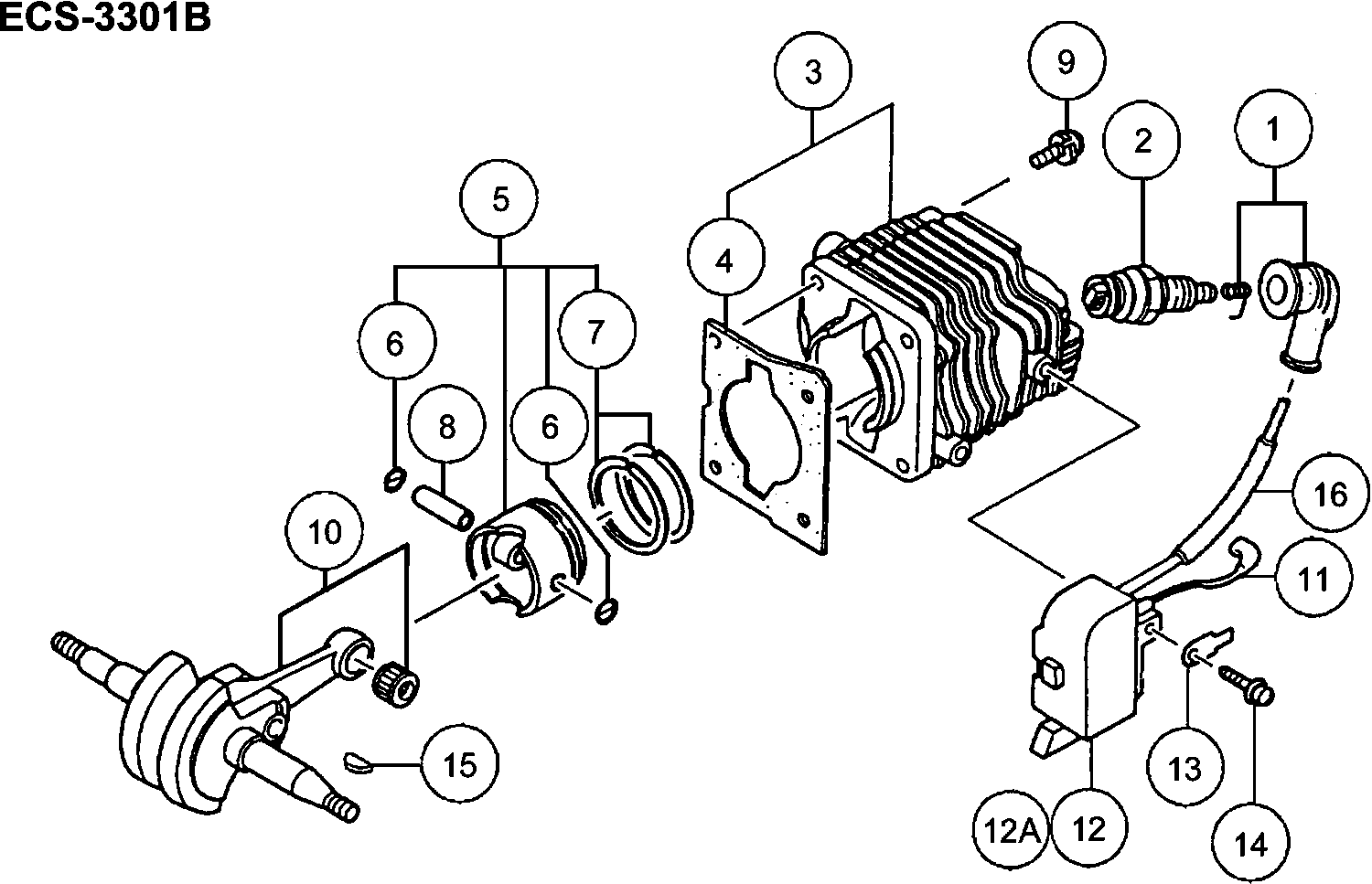 Onderdelen lijst van de Hikoki ECS-3301B
