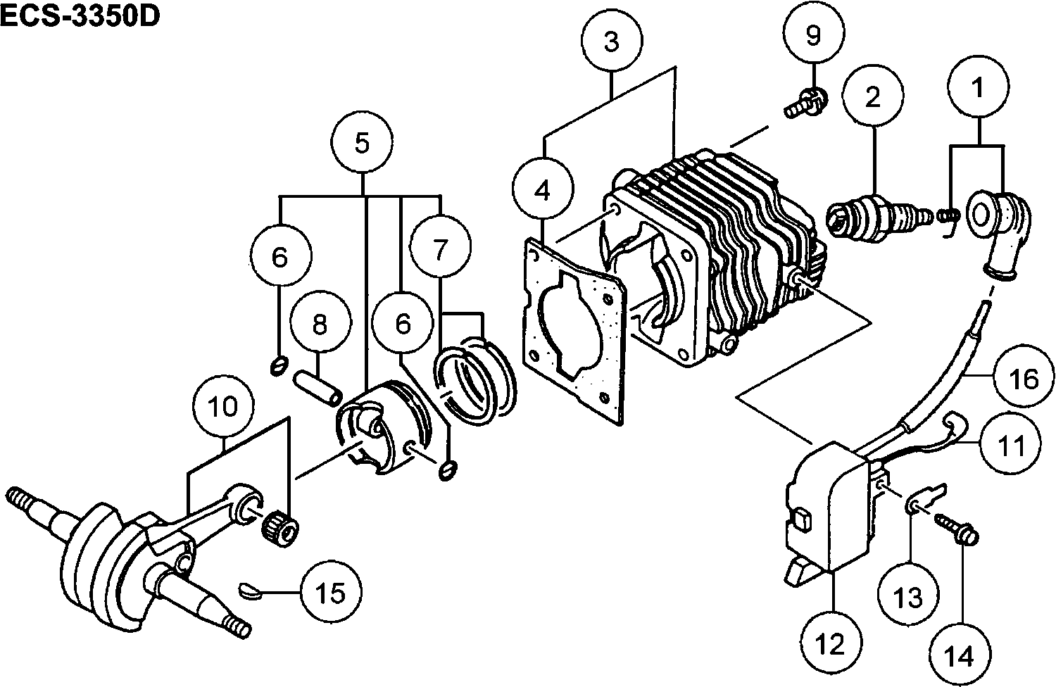 Onderdelen lijst van de Hikoki ECS-3350D