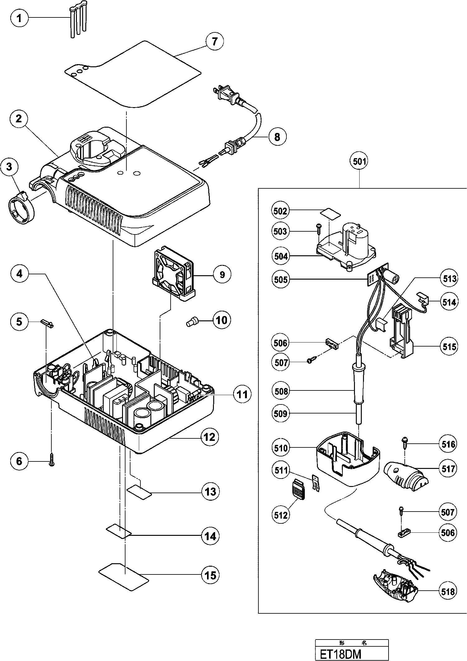 Onderdelen lijst van de Hikoki ET18DM