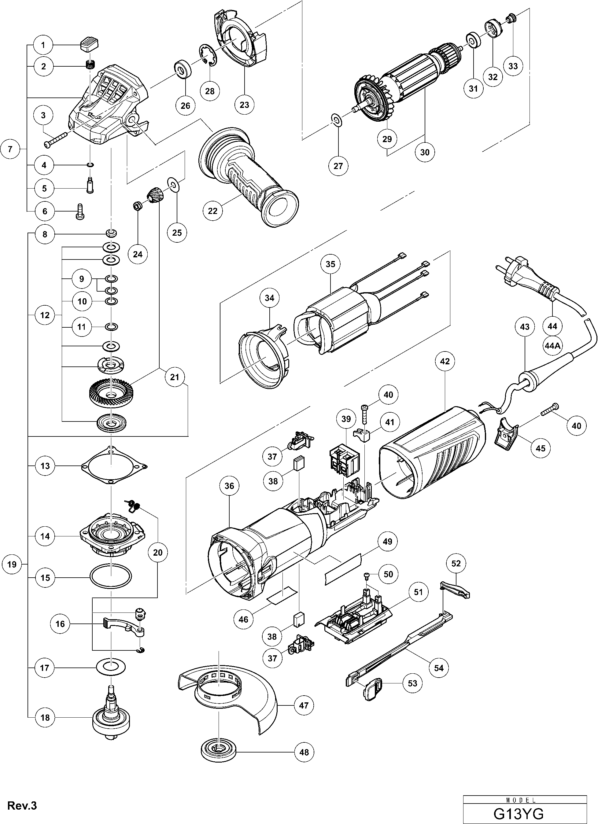 Hier vindt u alle beschikbare onderdelen en tekeningen van de 'Hikoki G13YG'. Vanaf hier kunt u direct alle gewenste onderdelen bestellen. Vele onderdelen moeten bij de fabrikant besteld worden, dit duurt afhankelijk van het merk, één tot vier weken. Alle informatie die we hebben, staat op onze website, wij kunnen u geen advies geven over wat u nodig heeft, daarvoor zult u de machine ter reparatie in moeten leveren. Let bij het bestellen op het volgende: