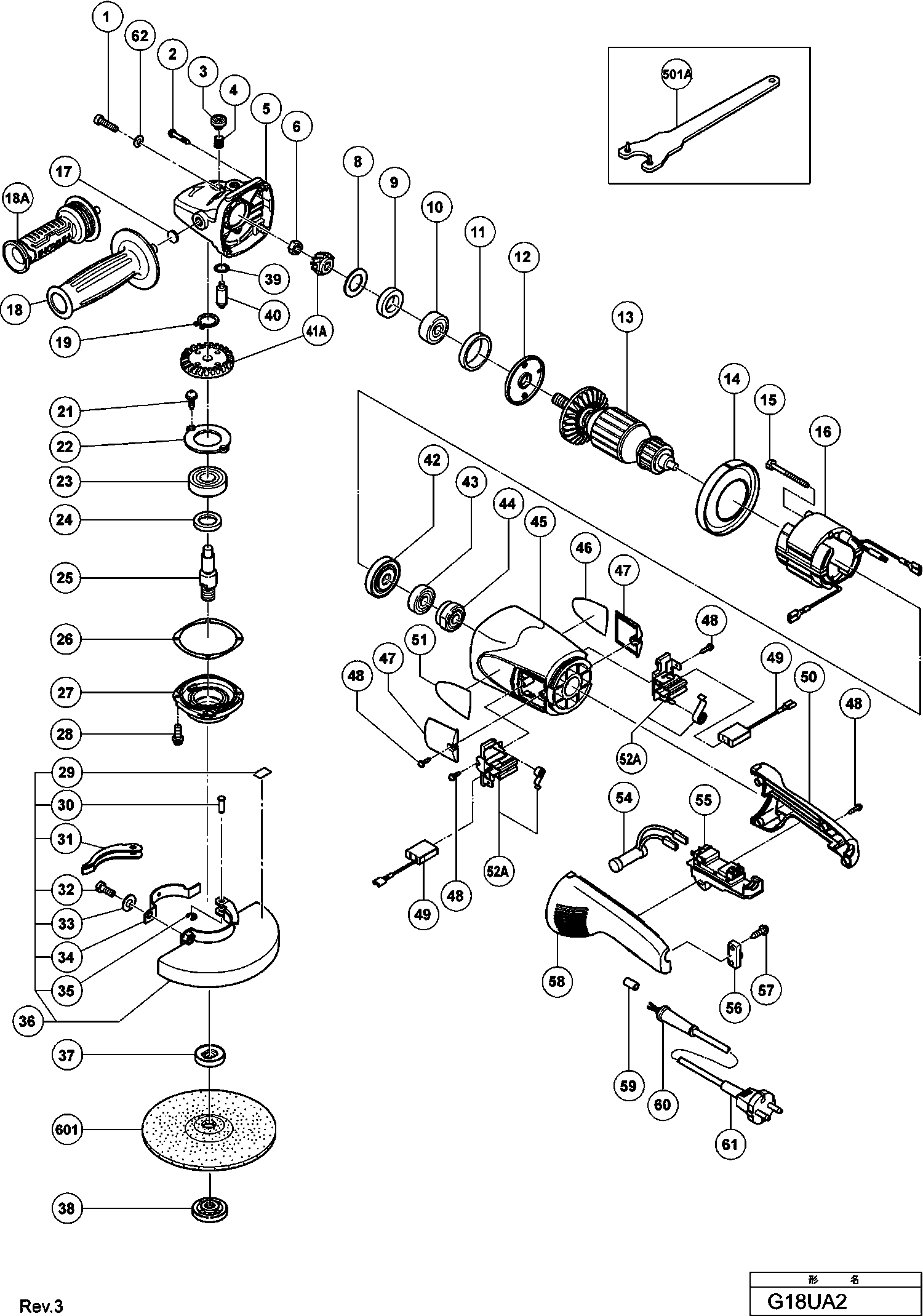 Onderdelen lijst van de Hikoki G18UA2