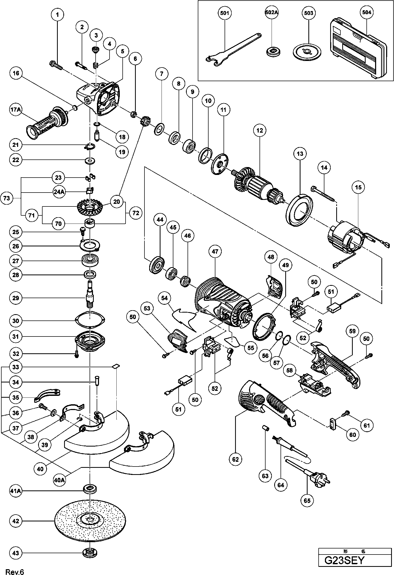 Onderdelen lijst van de Hikoki G23SEY
