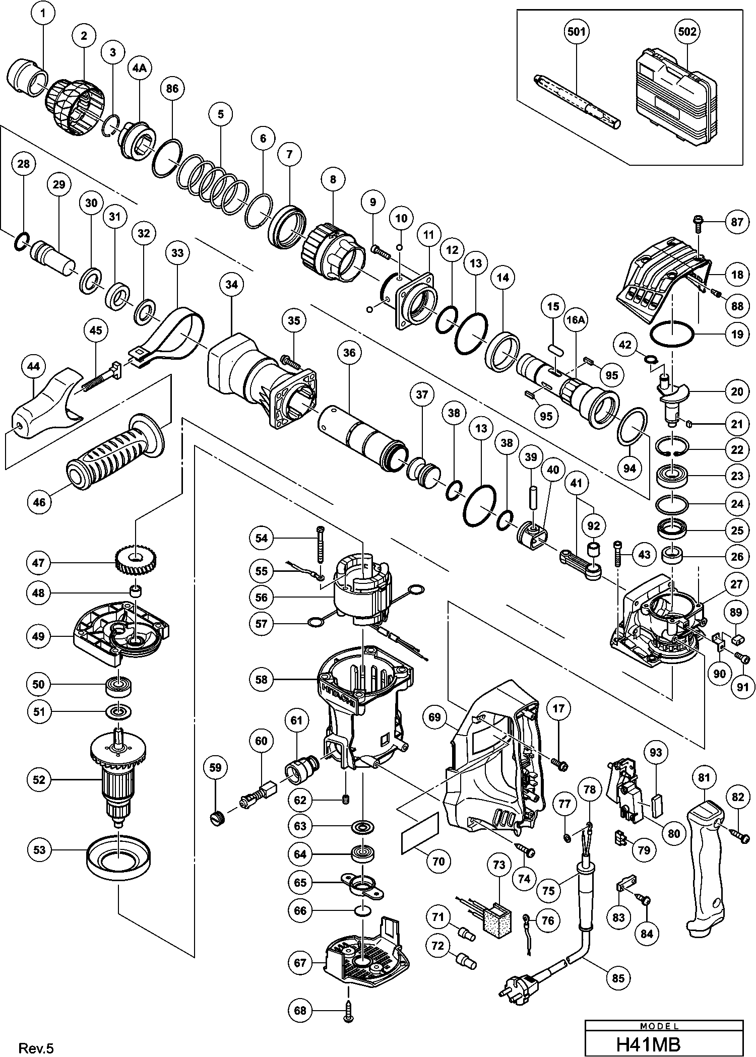 Onderdelen lijst van de Hikoki H41MB